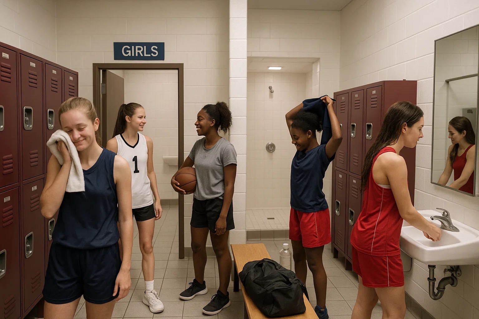 Girls are being forced to undress in front of biological males in locker rooms or risk being labeled “transphobic” for objecting.
